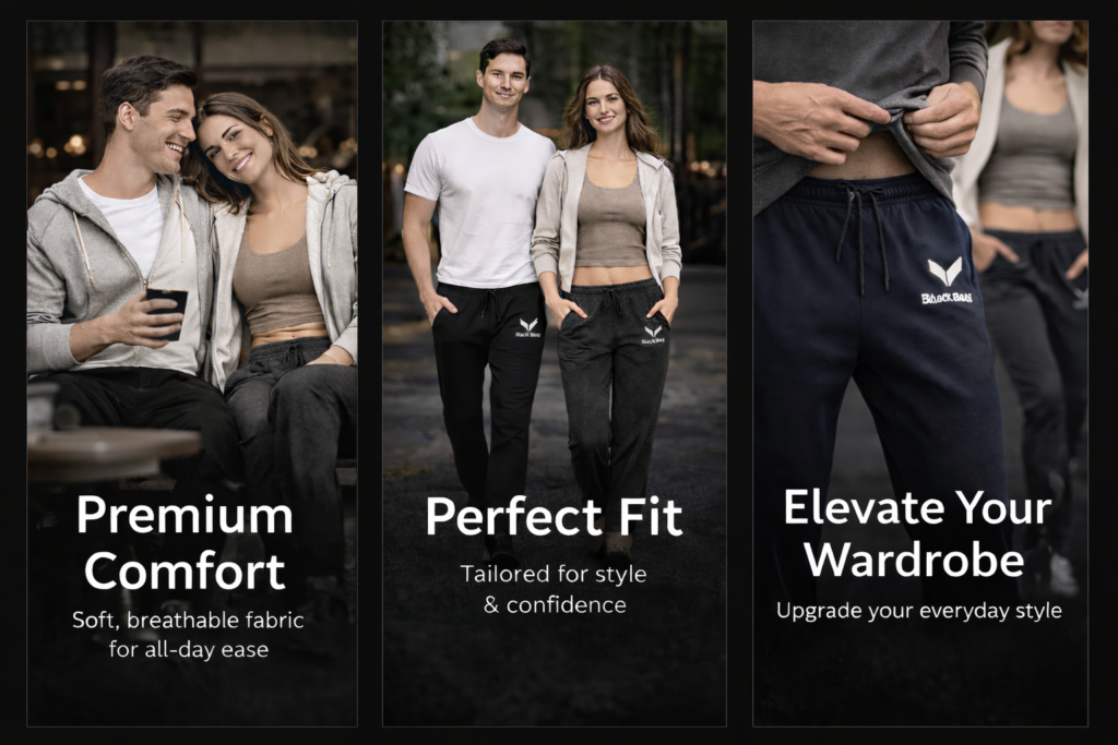Black Baaj Premium Black Track Pants for Men | Straight Fit | Two Side Pockets & One Back Pocket | Comfortable & Stylish Joggers